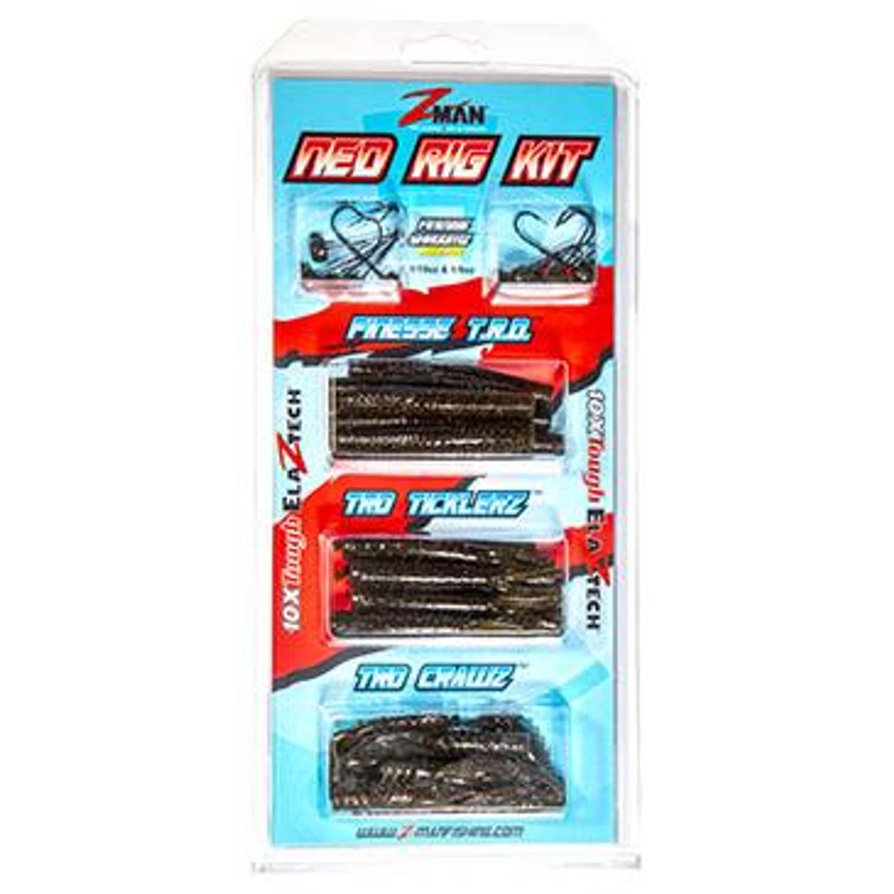A perfect way to get started fishing the incredibly effective Ned Rig technique, the Ned Rig kit features the most popular and versatile 10X Tough ElaZtech® finesse baits and ShroomZ™ jigheads. Each kit includes Finesse TRD™, TRD TicklerZ™, and TRD CrawZ™ softbaits in the Green Pumpkin color along with Finesse ShroomZ™ jigheads in 1/6 and 1/10 oz weights. Ideal for bass and a variety of other fresh and saltwater fishing. Just grab a kit and go fishing!